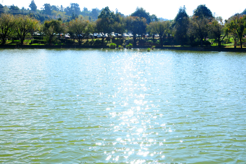 天然形成的放生池,池水充盈,宛如明鏡,簡直就是一個(gè)聚寶盆。池端的瀑布如銀色水簾飛流而下,與池水相襯,有動靜結(jié)合之妙,相得益彰。池中綠荷搖曳,蛙戲魚游,蜻蜓翻飛。湖邊的緩坡,是成片的桃樹和李樹,春季花開,桃花如彩云飄浮,李花如白霧迷離,在早晨的清風(fēng)中,淡香襲人,宛然若畫。
