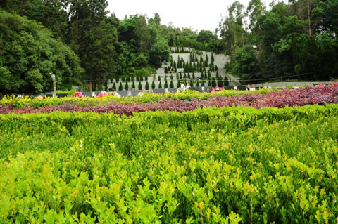 背靠山脈的信園有一個獨有的小環(huán)境,層臺從上面層疊而下,雙側(cè)山嶺環(huán)護(hù),處于蔥郁的植被之中,仰視松濤云海,放眼遠(yuǎn)山疊嶂,實為一處不可多得的藏風(fēng)聚氣之地,而其格調(diào)又不事張揚,頗有幾份隱逸的味道。然而進(jìn)入之后,又是峰回路轉(zhuǎn),給人以別有洞天之感。誠信之人,自然應(yīng)該得到禮遇和尊重,這也是金寶山建設(shè)信園的初衷。