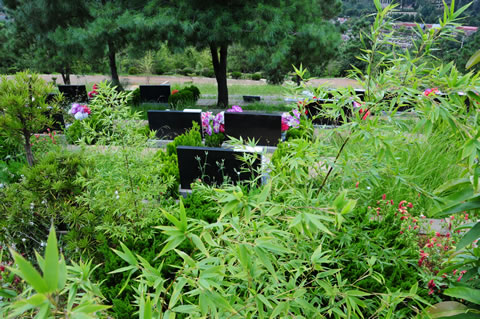竹秀園是金寶山生命文化園中的園區(qū)之一,背靠靈龜山居于中部地帶,山勢緩坡而下,前方明堂開闊呈現(xiàn)鍋底狀,風水云:“明堂如掌心,富貴斗量金;明堂如鍋底,富貴無人比”。左青龍(近為龜山,遠為老君山)護衛(wèi),右白虎馴順。池塘品列,案臺具備。園區(qū)與周圍的景觀相融合,環(huán)境雅靜,有幾分隱逸之風。