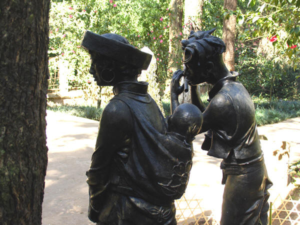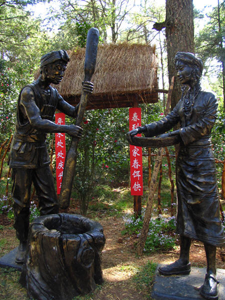 云南十八怪之五、出門(mén)娃娃男人帶:云南山區(qū)山高坡陡,村民出門(mén)趕街,男人身強(qiáng)力壯,背著娃娃安全可靠,行路方便,體現(xiàn)云南少數(shù)民族夫妻恩愛(ài)的純樸民風(fēng)。