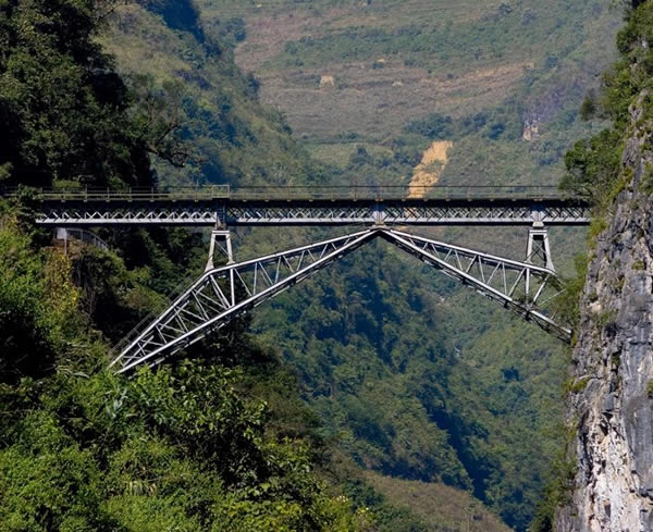 插圖16:白寨大橋是滇越鐵路上最高的橋梁,二戰(zhàn)抗日戰(zhàn)爭期間,是日軍轟炸的重點,原橋在抗戰(zhàn)中拆毀,此橋原地重建,樣式已與原橋不同。